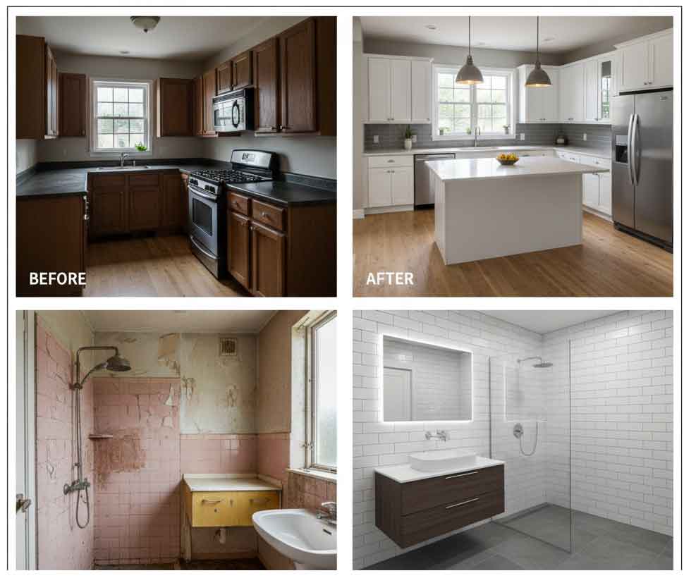Kitchens and bathrooms aren’t just “rooms”—they’re the spaces you feel every single day. A kitchen that’s cramped, poorly lit, or short on storage makes daily life harder than it needs to be. A bathroom with outdated fixtures, worn tile, weak ventilation, or water damage can feel uncomfortable and stressful. And when these areas start showing age, it’s not just about appearance—function, cleanliness, and long-term value are all on the line.